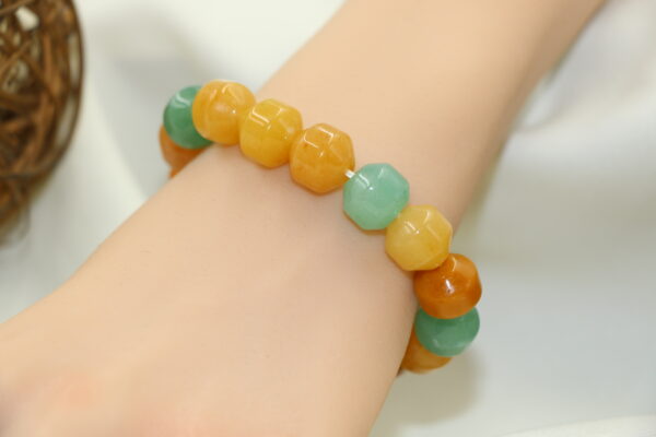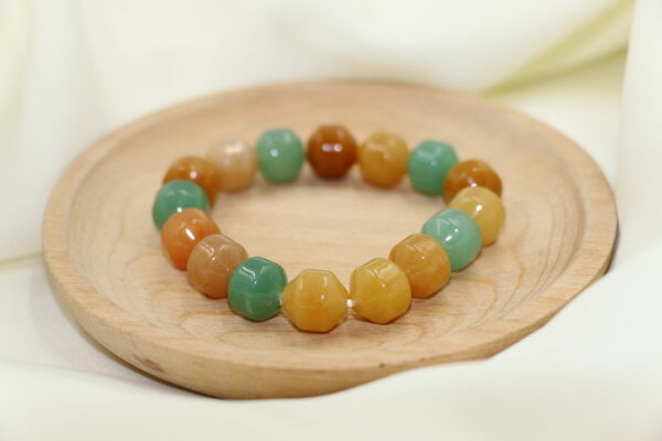 三彩東菱玉手串色彩豐富,如自然的縮影,佩戴於腕間,既能調和五行能量,又能帶來平衡與穩定。無論工作或日常生活,它都能為你注入智慧與正能量,助你步步高升。