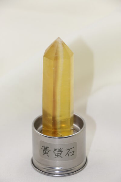 選用天然黃螢石能量柱,晶體透出明亮黃光,