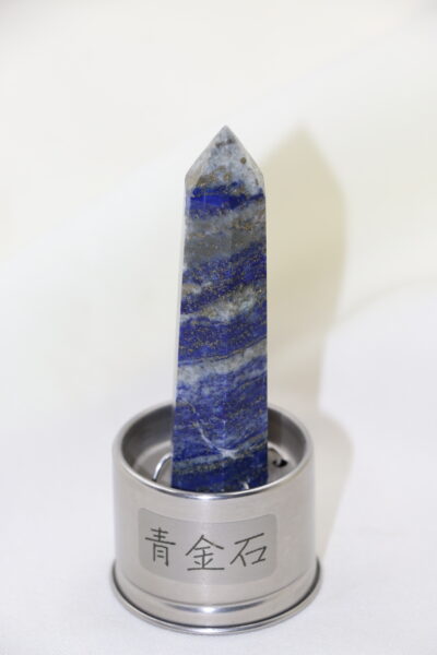 選用天然青金石能量柱,深藍中點綴金色斑點,