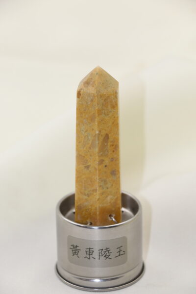 選用天然黃東陵玉能量柱,晶體透出溫暖金光,