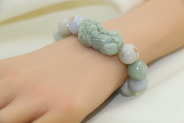 翡翠的清澈靈氣結合貔貅的強大守護力,佩戴於腕間,猶如將財富、平安與健康同時攜帶。無論日常還是重要場合,都能展現穩重氣場與財運加持。