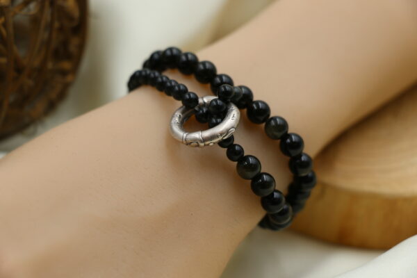 黑曜石和金曜石能量珠,象徵專注、自信與守護能量的融合,成就全方位的護身寶串